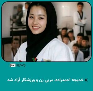 خدیجه احمدزاده، مربی ۲۲ ساله تکواندو و زن ورزشکار افغانستانی که بهدلیل آموزش مخفیانه ورزش به دختران در ولایت هرات بازداشت شده بود، آزاد شد.